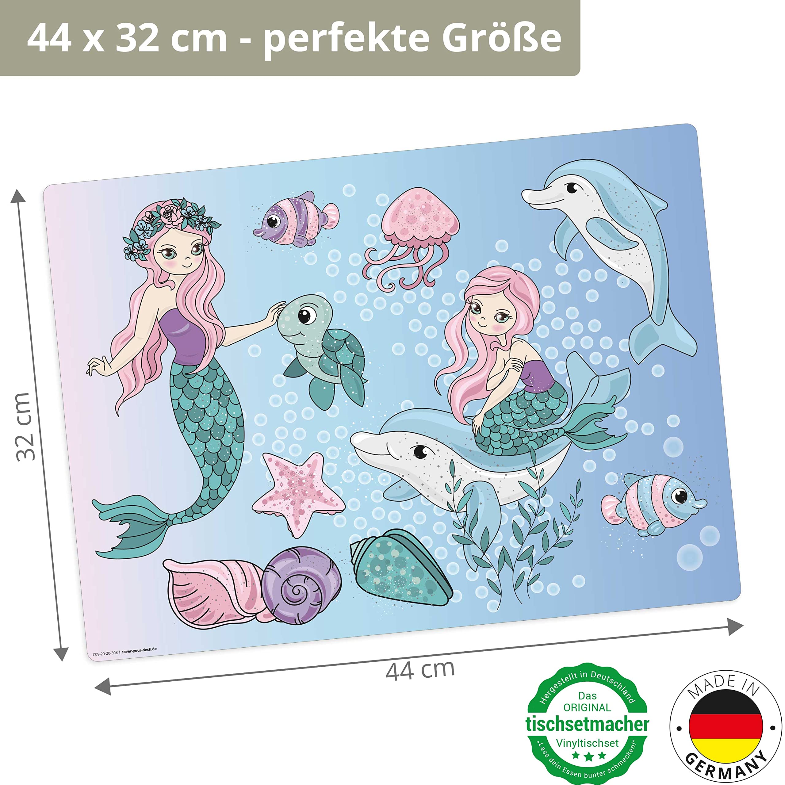 Mit einer wasserabweisenden Oberfläche, hoher Formstabilität und einer pflegeleichten Struktur bieten sie eine langlebige Lösung für die Küche und das Esszimmer. Platzdeckchen Kinder Tischset | Platzset Abwaschbar - Meerjungfrau - Aus Erstklassigem Schreibtischunterlage Für Kinder MuchoWow Platzset Rosa - Palette - Enfarbg - Enfarbg rosa, (6-St Ob modern, klassisch oder festlich - Tischsets & Platzsets in verschiedenen Designs von Villeroy & Boch Jetzt das passende Set finden Tischsets: Über 6.000 Tischsets online. Tischsets mit Fleckschutz, Tischsets abwaschbar. Moderne Muster und aktuelle Farben. Sofort lieferbar Von liebenswerten Tierfreunden bis hin zu abenteuerlichen Weltraumlandschaften bieten wir eine breite Auswahl an Designs, die die Fantasie Ihrer Kinder anregen und ihre Kreativität fördern. So können Sie sicher sein, dass Ihre Kleinen ihre Mahlzeiten ohne Unfälle genießen können. Dieses Tischset besteht aus 1,6mm dickem, erstklassigem Premium Vinyl und wird in Deutschland hergestellt. Robuste Qualität: Die Tischsets bestehen aus hochwertigem Vinyl-Material, das langlebig und strapazierfähig ist. Einfach mit einem feuchten Tuch abwischen, und schon erstrahlen die Motive wieder in ihrer vollen Pracht. Rutschfest und sicher: Die Rückseite der Tischsets ist mit einer rutschfesten Beschichtung versehen, die ein Verrutschen auf dem Tisch verhindert. Qualität, auf die Sie zählen können – hergestellt in Deutschland. Kindgerechte Motive: Unsere Tischsets sind mit fröhlichen und kindgerechten Motiven gestaltet.